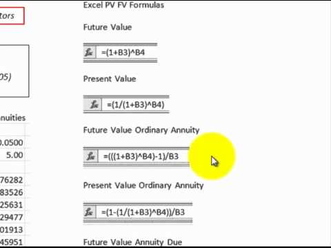 3:58 Discount Factors (Excel Formulas Detailed To Replace Factor Tables, PV, FV, Annuity Due , Finding Future Value 9:53 Manage Loans with an Amortization Table in Excel - Part 1 by Ralph Phillips 17,508 views; Loading more suggestions Load more suggestions . Language: English ... View Video